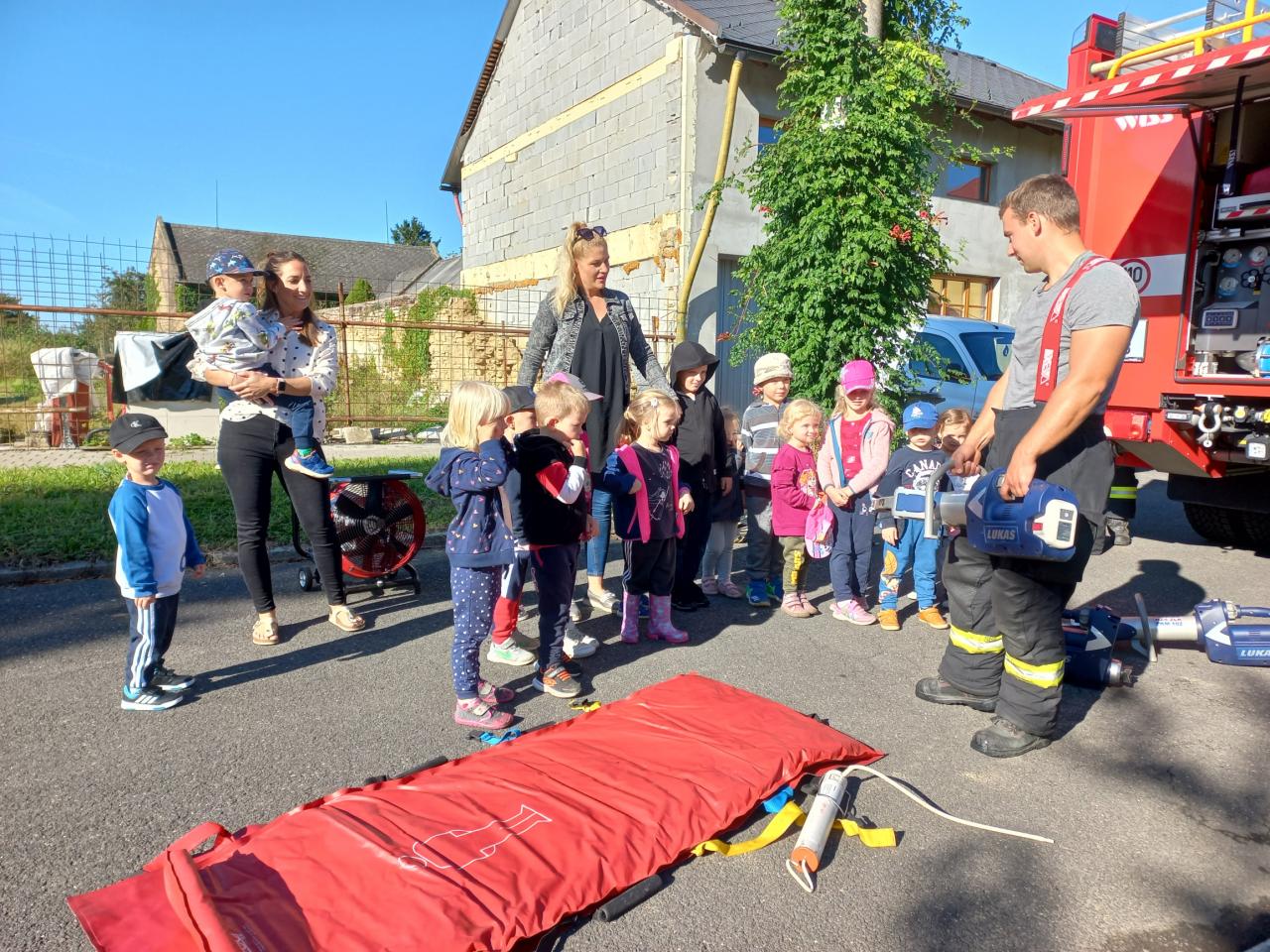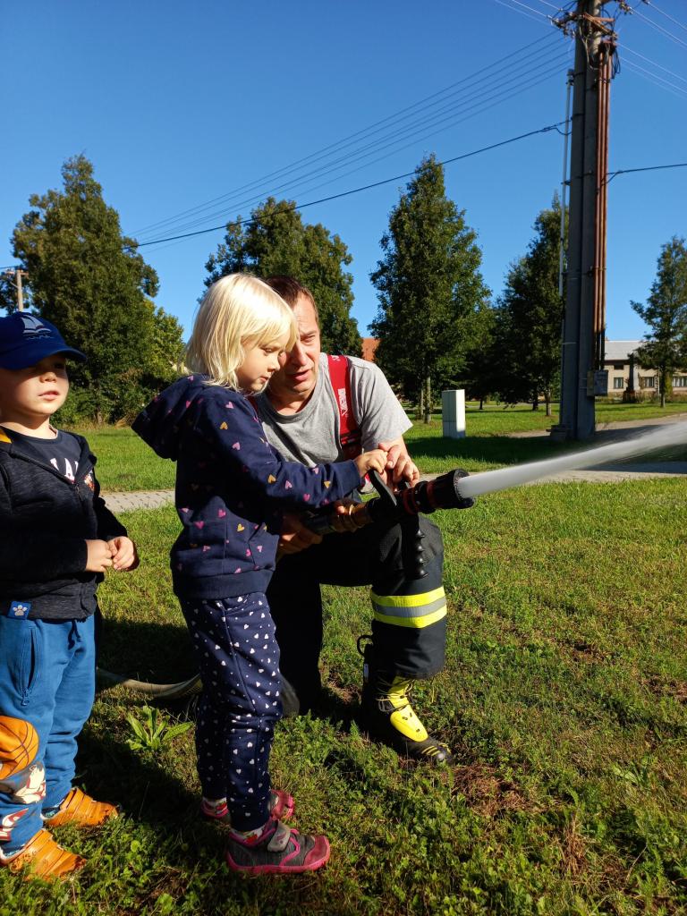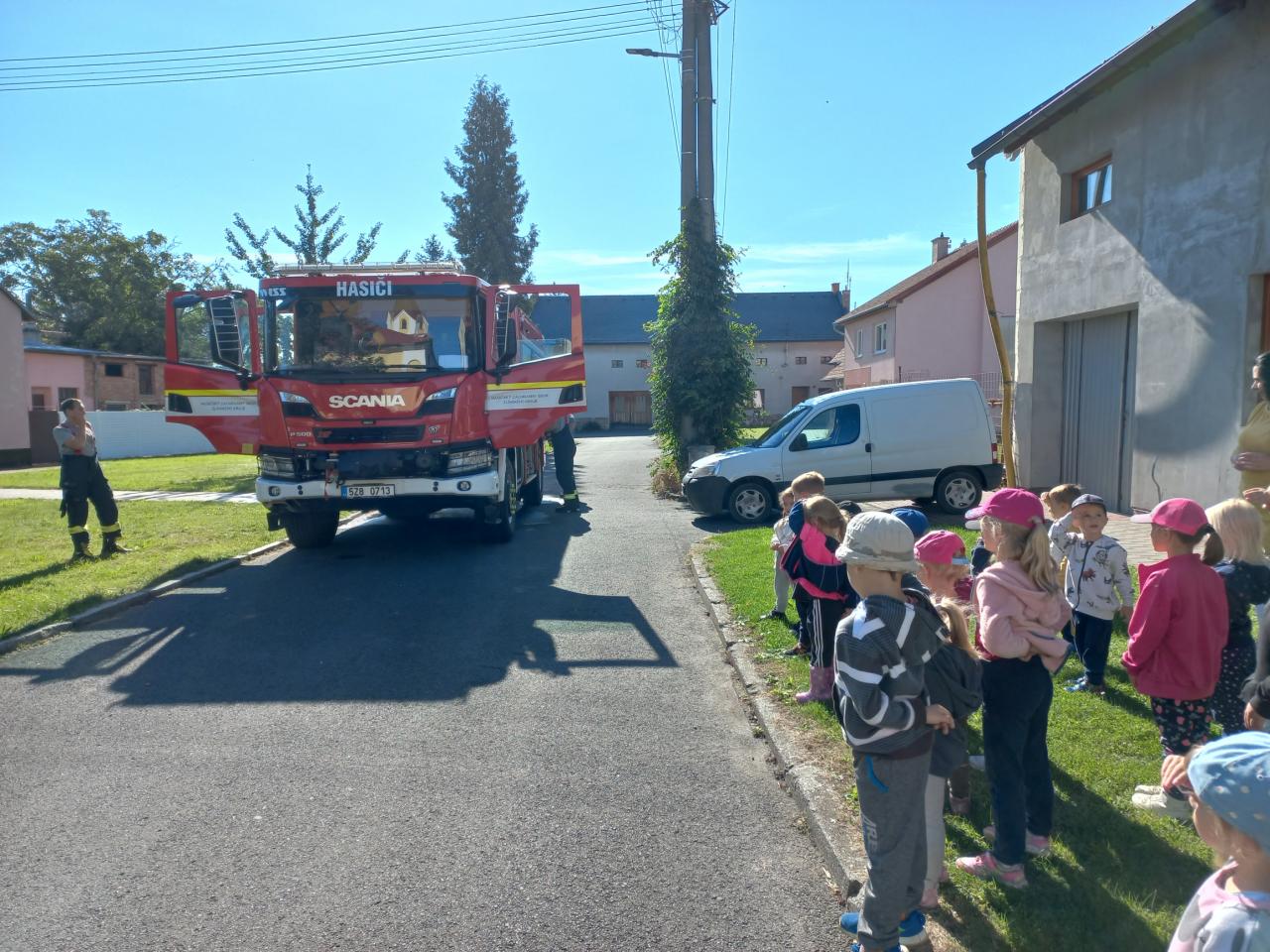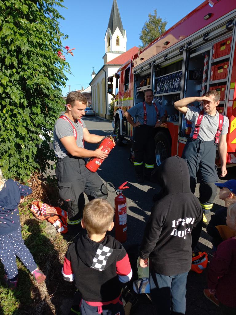 Hasičský vůz před MŠ
