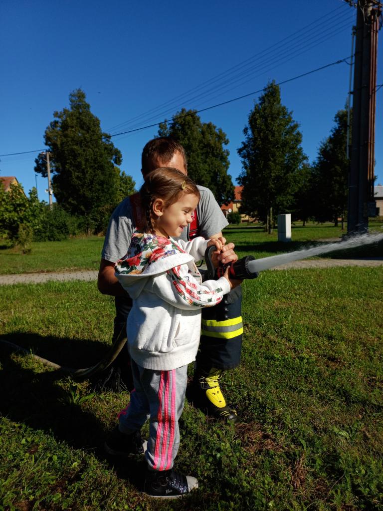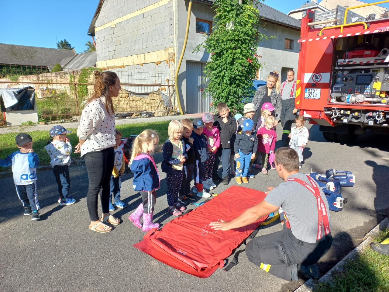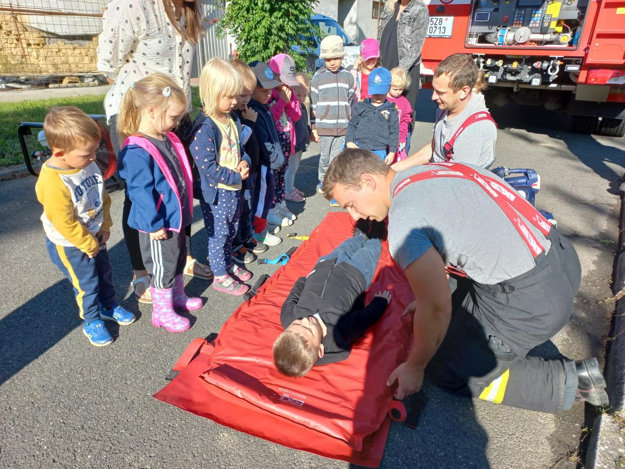 Hasičský vůz před MŠ